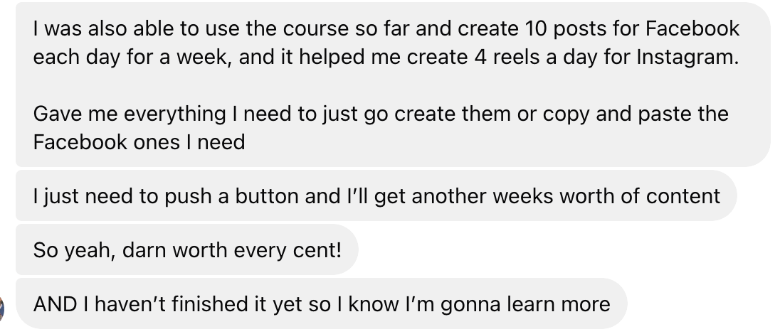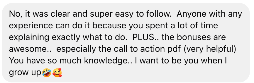 I’ve helped students from all kinds of backgrounds from complete beginners to established creators get real results. Plus, the strategies inside are evergreen, meaning they work across platforms and industries. And if you’re ever stuck, you can revisit the lessons and resources at your own pace.
